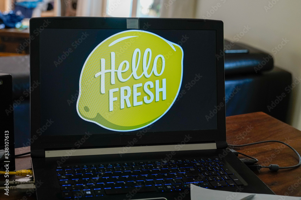 Hello Fresh Sign Logo Laptop Screen Computer Home Application Hellofresh Food Delivery App Stock Photo Adobe Stock